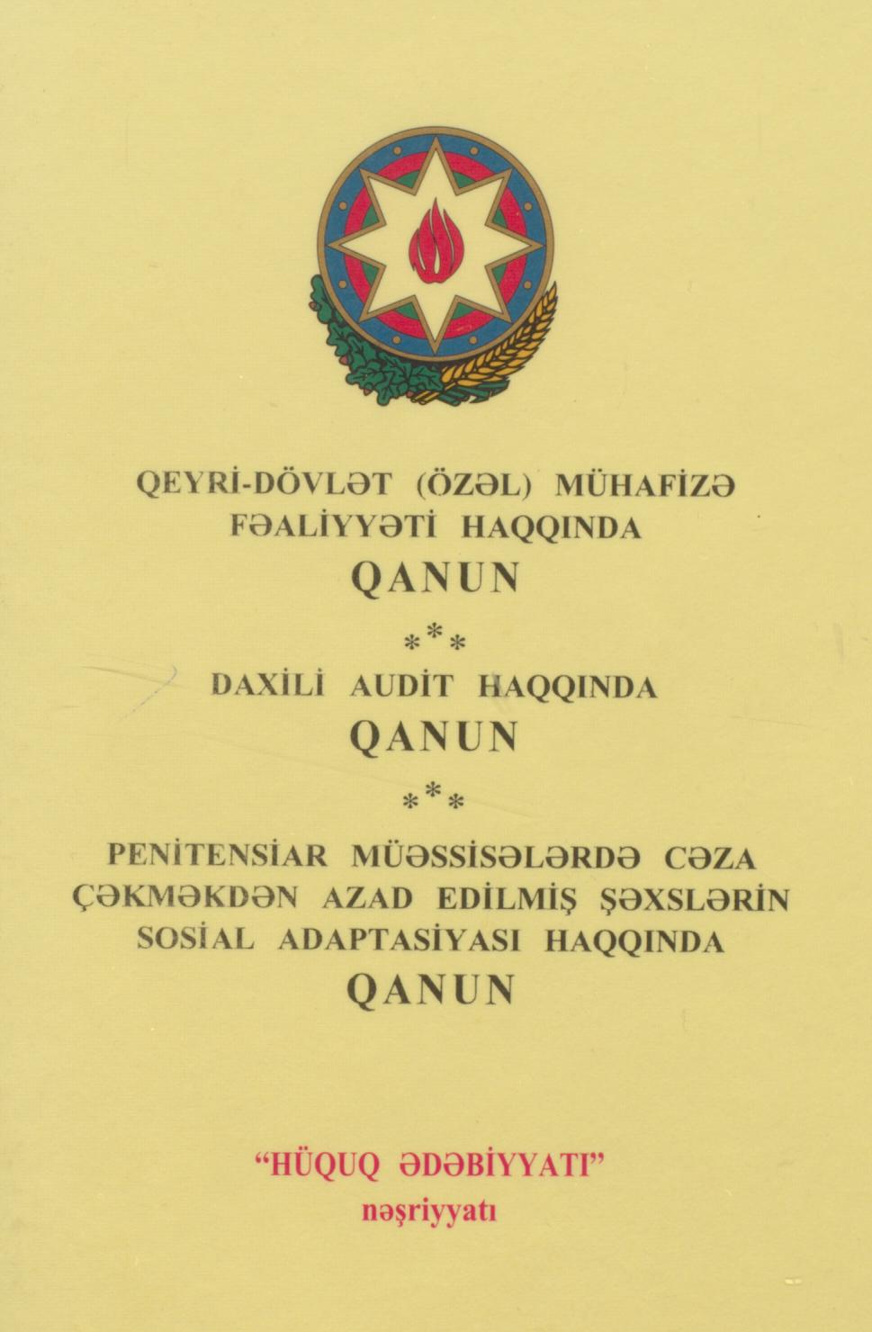 Kitaba qeyri-dövlət (özəl) mühafizə fəaliyyəti haqqında, daxili audit haqqında, penitensiar müəssis…