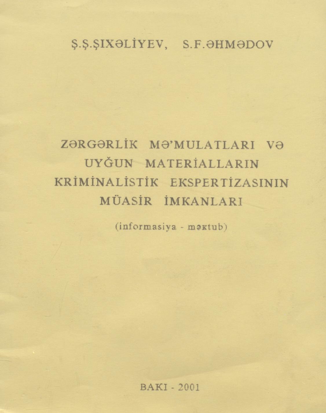 Kitabçada istintaq orqanlarını zərgərlik məmulatları və uyğun materialların kriminalistik ekspertiz…