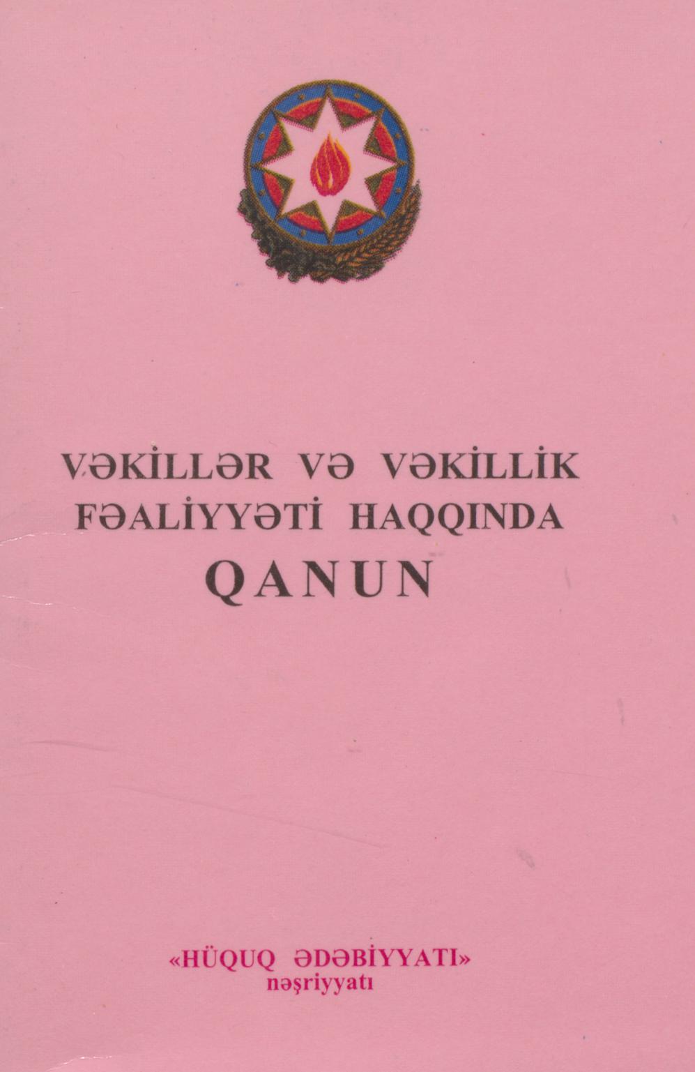 Kitabçada Vəkillər və vəkillik fəaliyyəti haqqında Azərbaycan Respublikasının 28 dekabr 1999-cu i t…