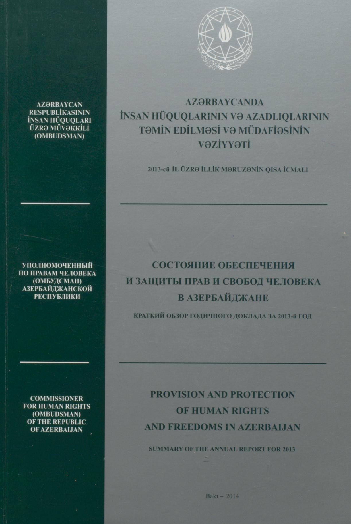 Kitabda "Azərbaycanda insan hüquqları və azadlıqlarının təmin edilməsi və müdafiəsinin vəziyyəti" b…