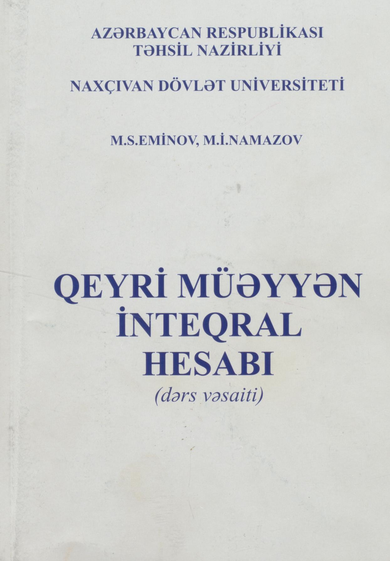 Dərs vəsaitində qeyri müəyyən inteqralın tərifi, xassələri, inteqrallama cədvəli və inteqrallama me…