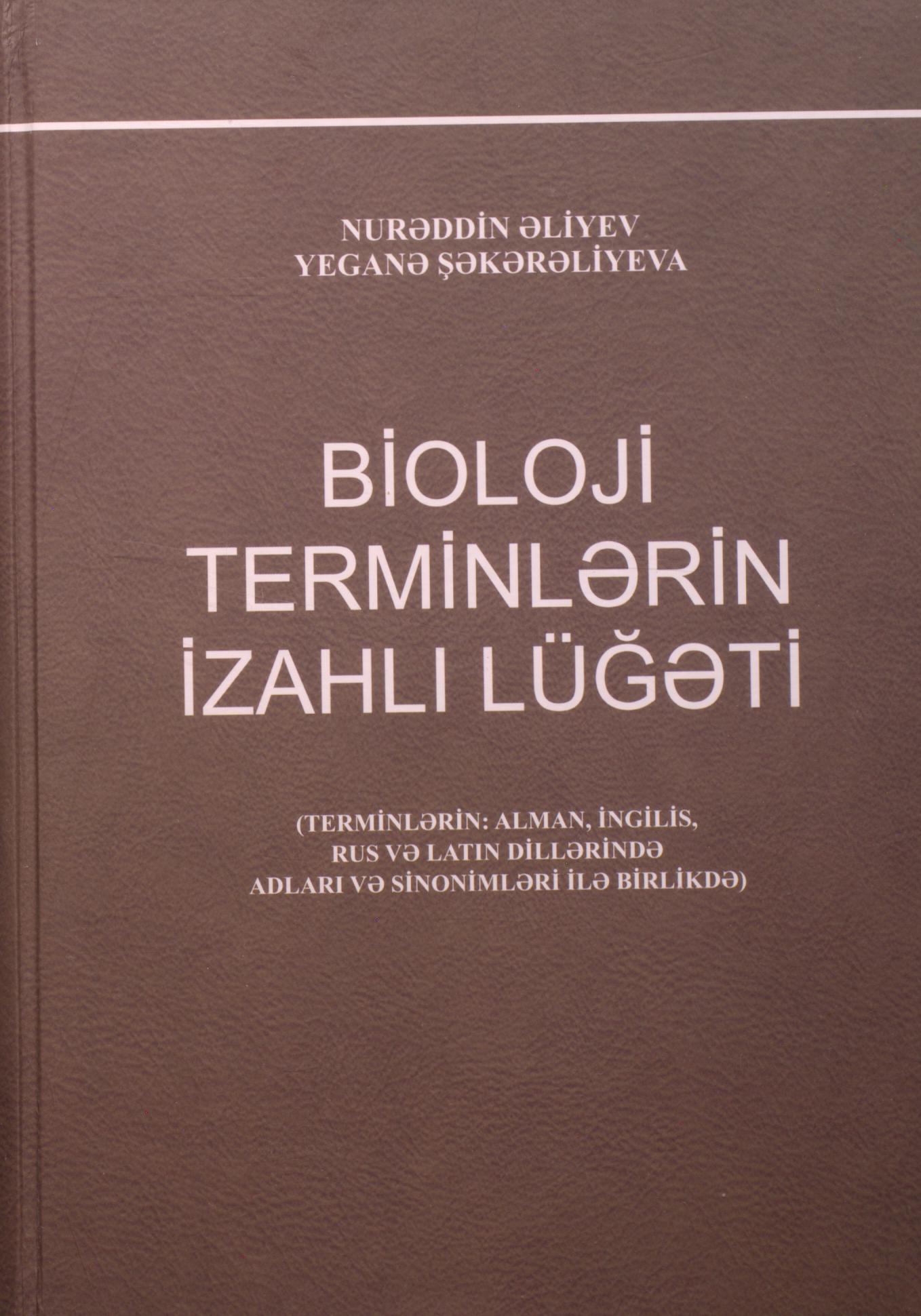 Kitabda bioloji terminlərin alman, ingilis, rus və latın dillərində adları və sinonimləri ilə birl…