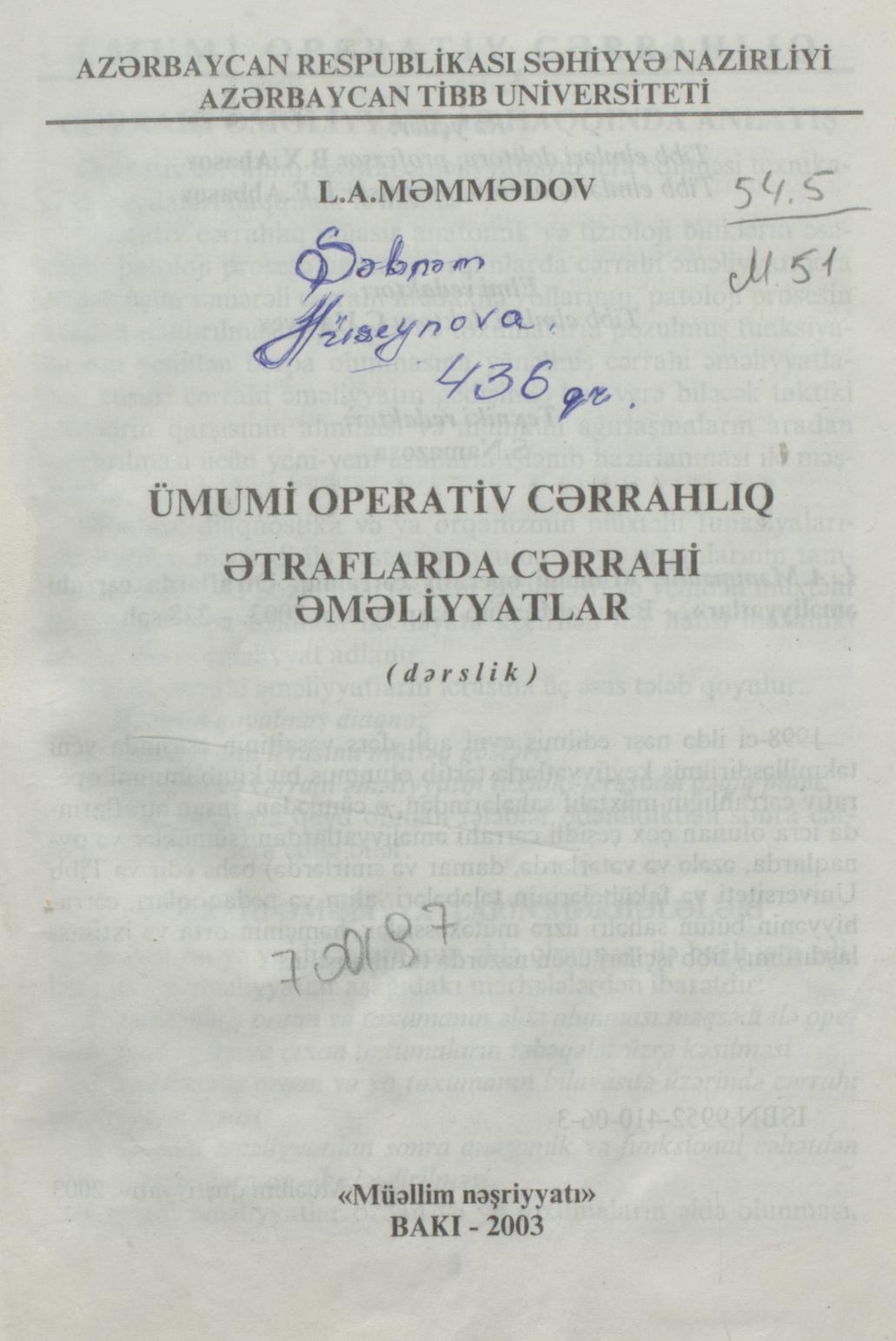 Kitab ümumi operativ cərrahlığın müxtılif sahələrindən, insan _x000D_ ətraflarında icra olunan cox …