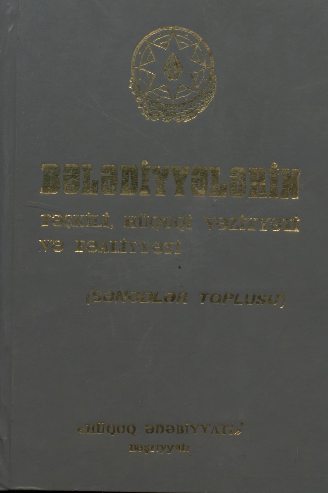 Kitaba bələdiyyələrin təşkili, hüquqi vəziyyəti və fəaliyyətindən bəhs edən sənədlər daxil edilmişd…
