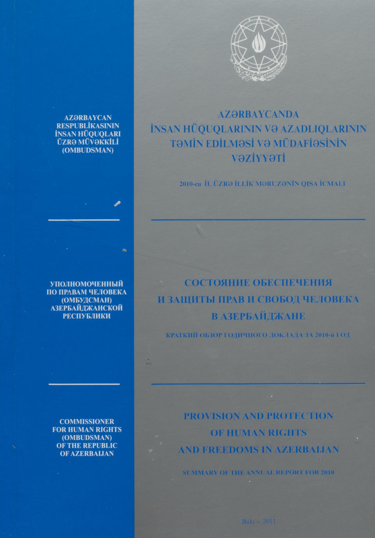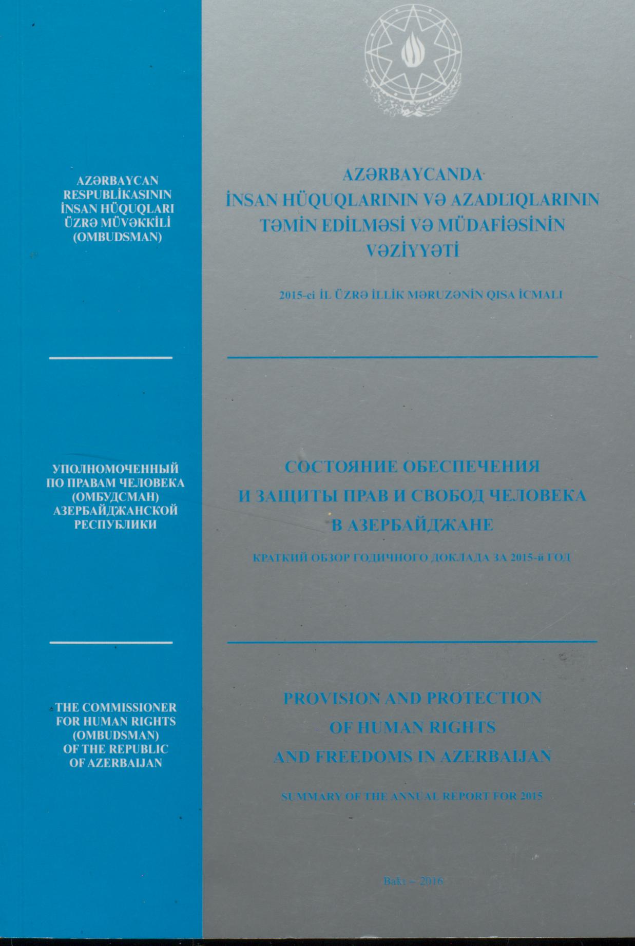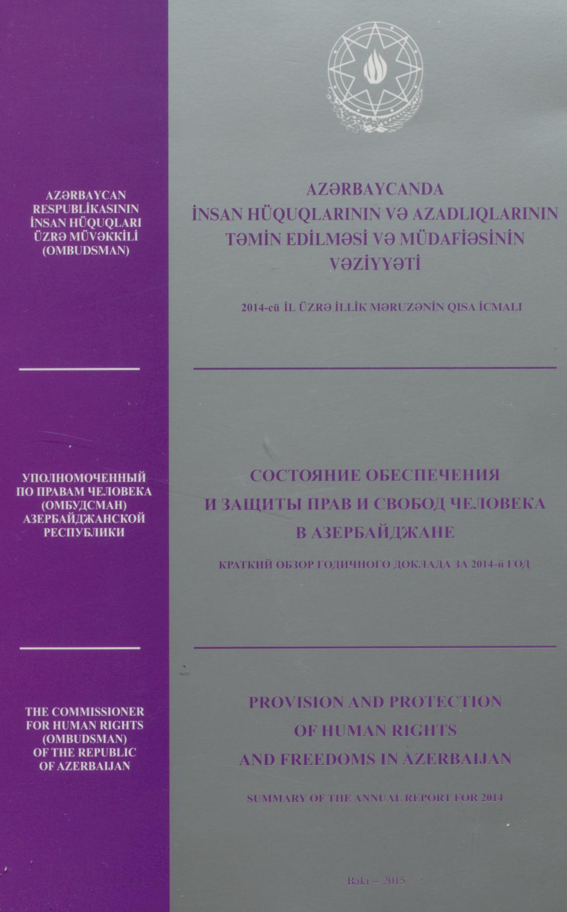 Kitabda "Azərbaycanda insan hüquqlarının və azadlıqlarının təmin edilməsi və müdafiəsinin vəziyyəti…