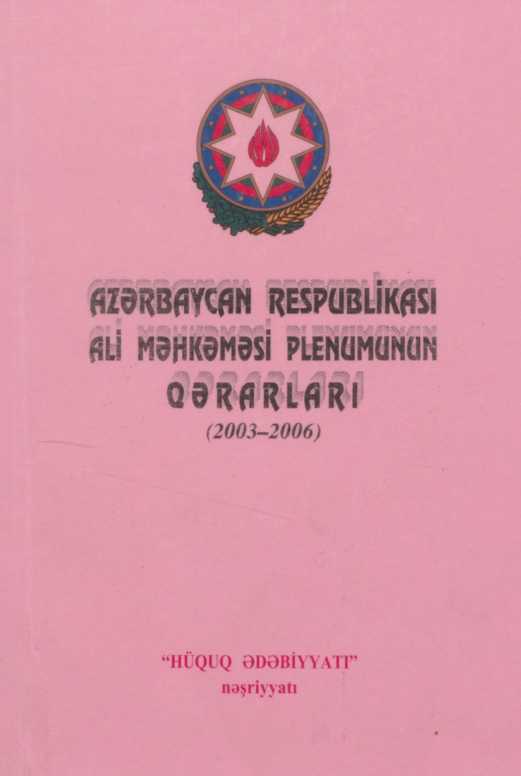 Kitaba 2003-2006-cı illərdə Azərbaycan Respublikası Ali Məhkəməsi Pienumunun qərarları daxil edilm…