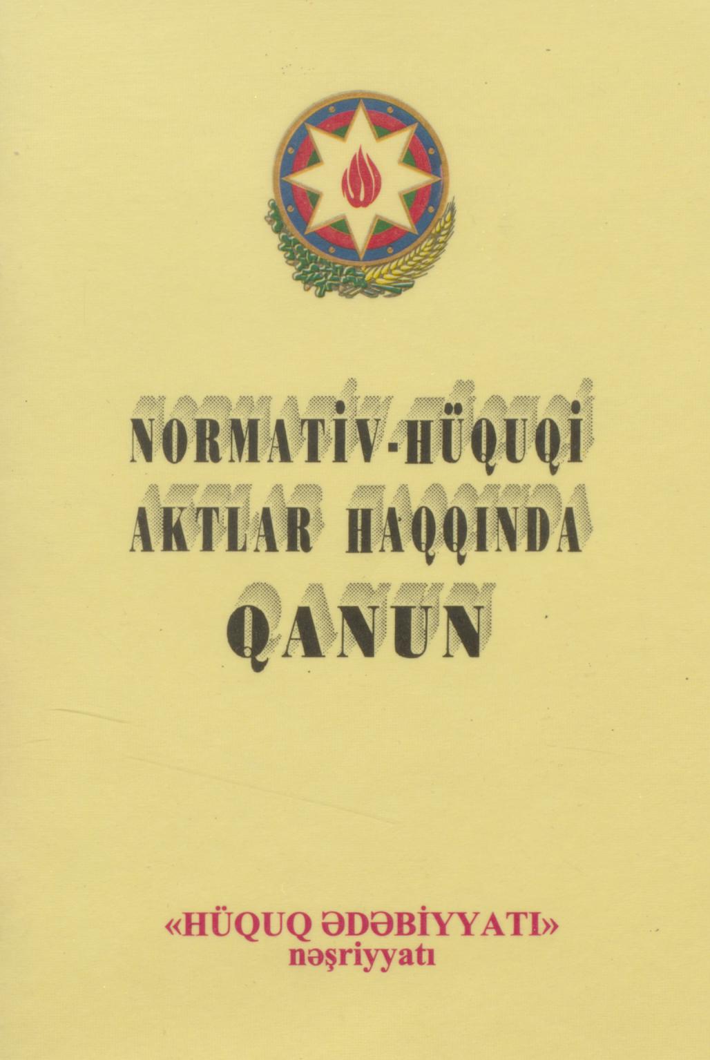 Kitaba Azərbaycan Respublikasının 26 noyabr 1999-cu il tarixli qanununa əsasən normativ-hüquqi akt…