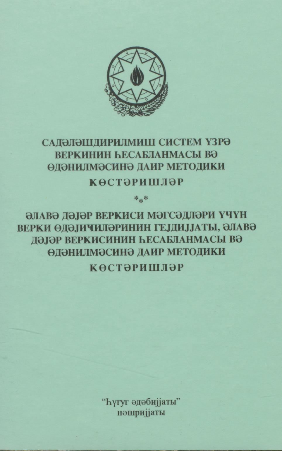 Kitaba Dövlət Rüsumu haqqında Azərbaycan Respublikasının 24 mart 1995-ci il tarixli qanunu daxil e…