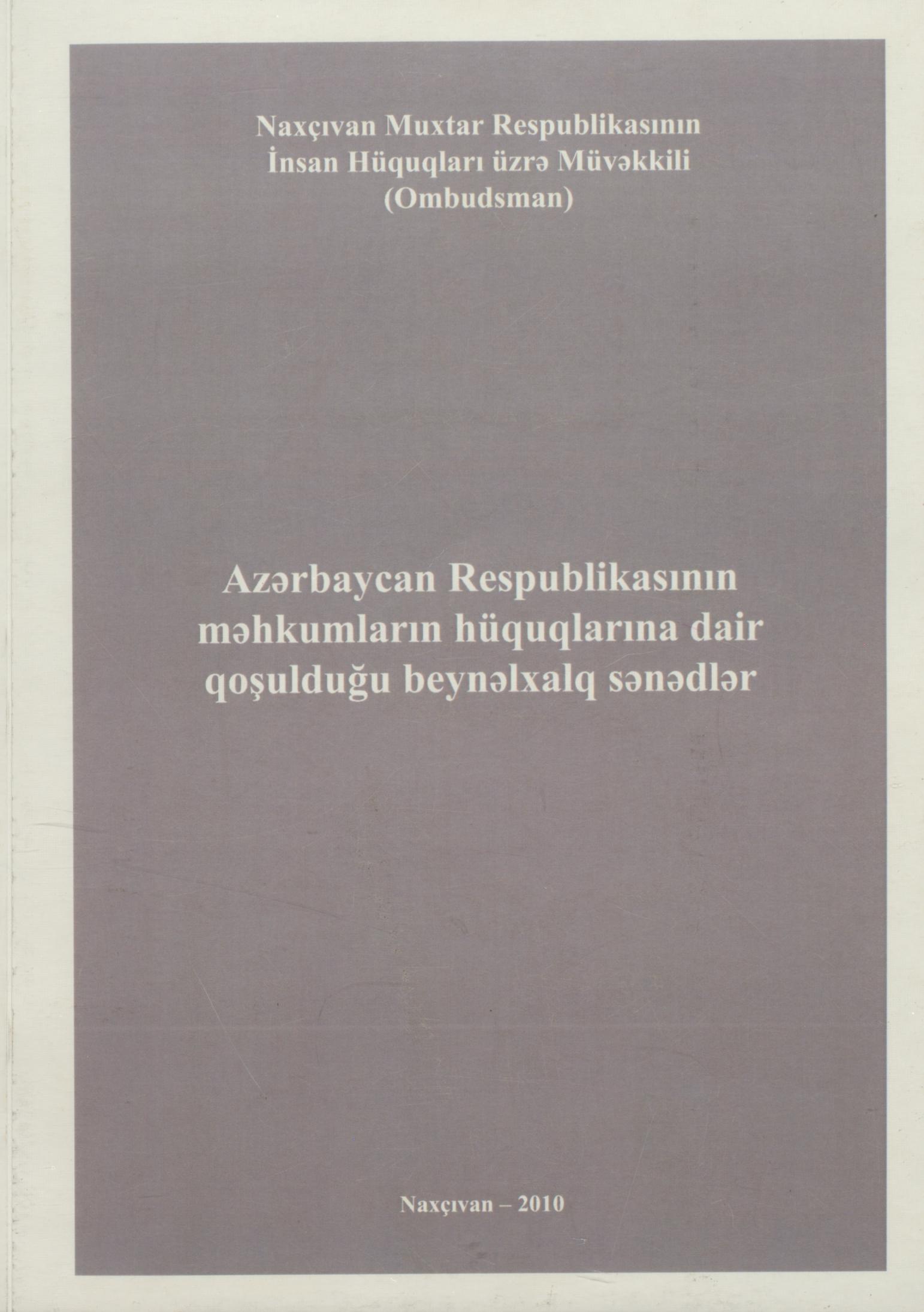 Kitaba Azərbaycan Respublikasının məhkumların hüquqlarına dair qoşulduğu beynəlxalq sənədlər dax…