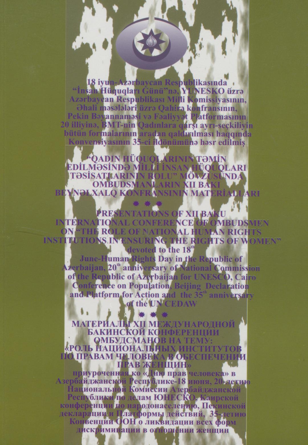 Kitabda 18-20 iyun 2014-cü il tarixdə Bakı şəhərində keçirilmiş Ombudsmanların XII Bakı Beynəlxalq…