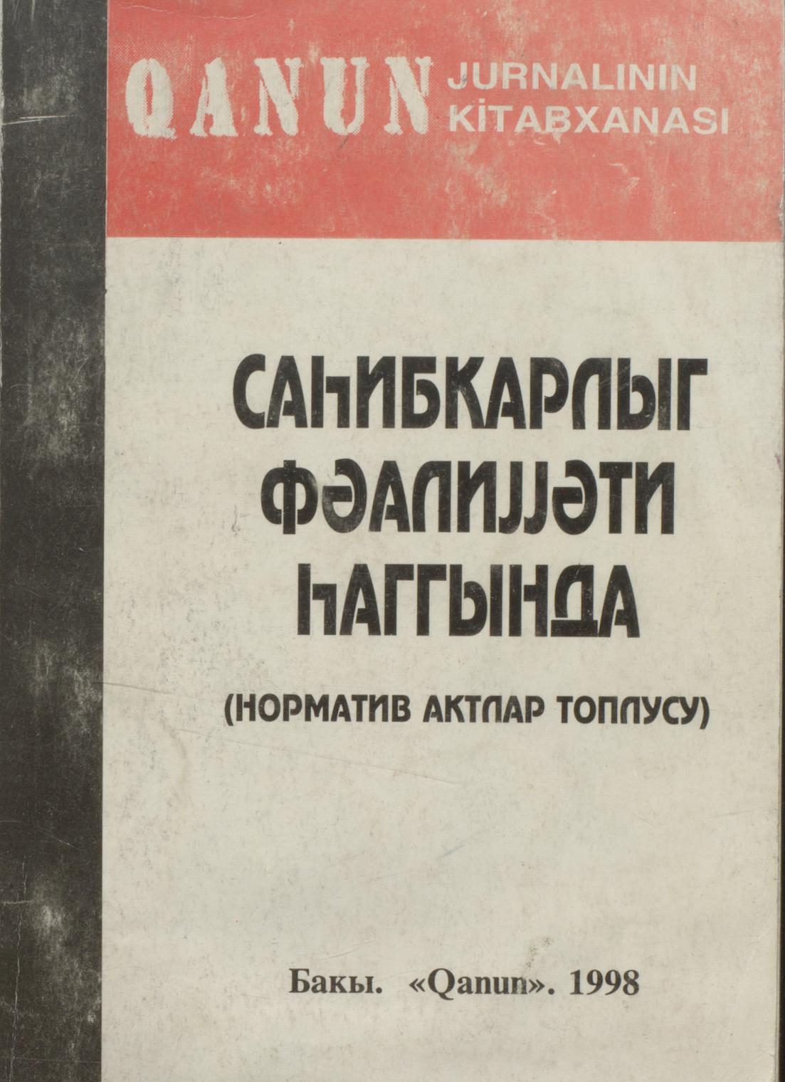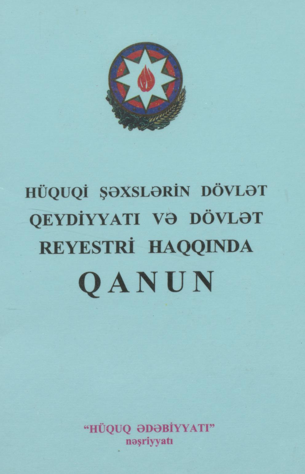 Kitaba hüquqi şəxslərin dövlət qeydiyyatı və dövlət reystri haqqında qanun daxil edilmişdir.