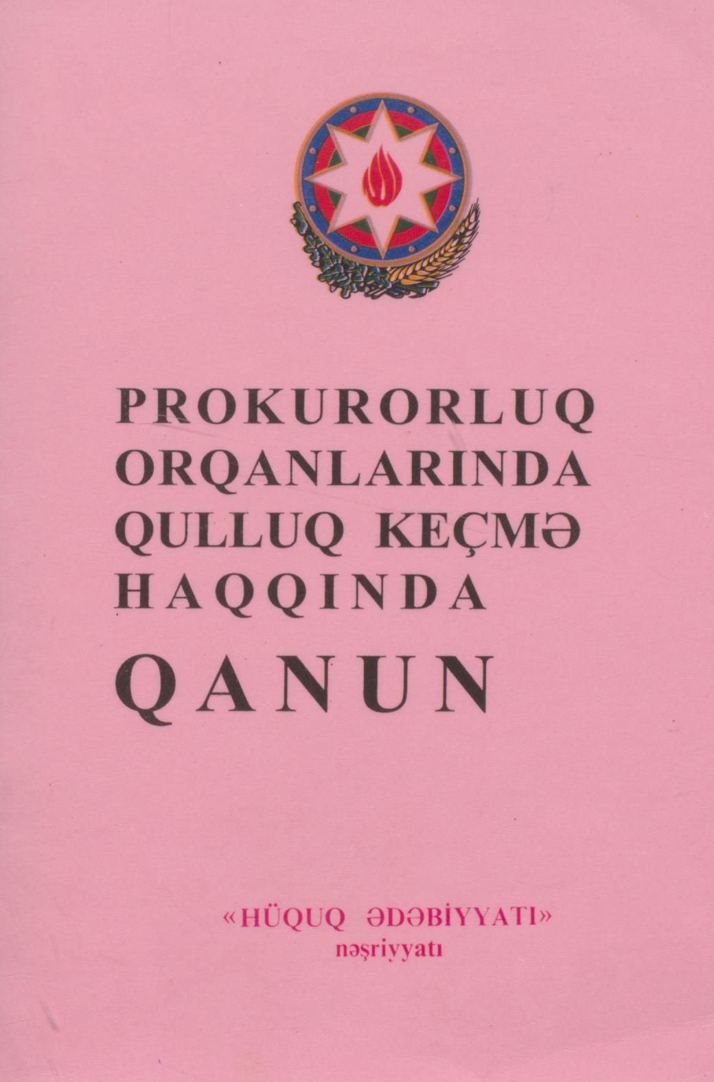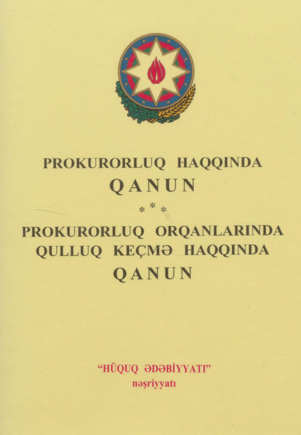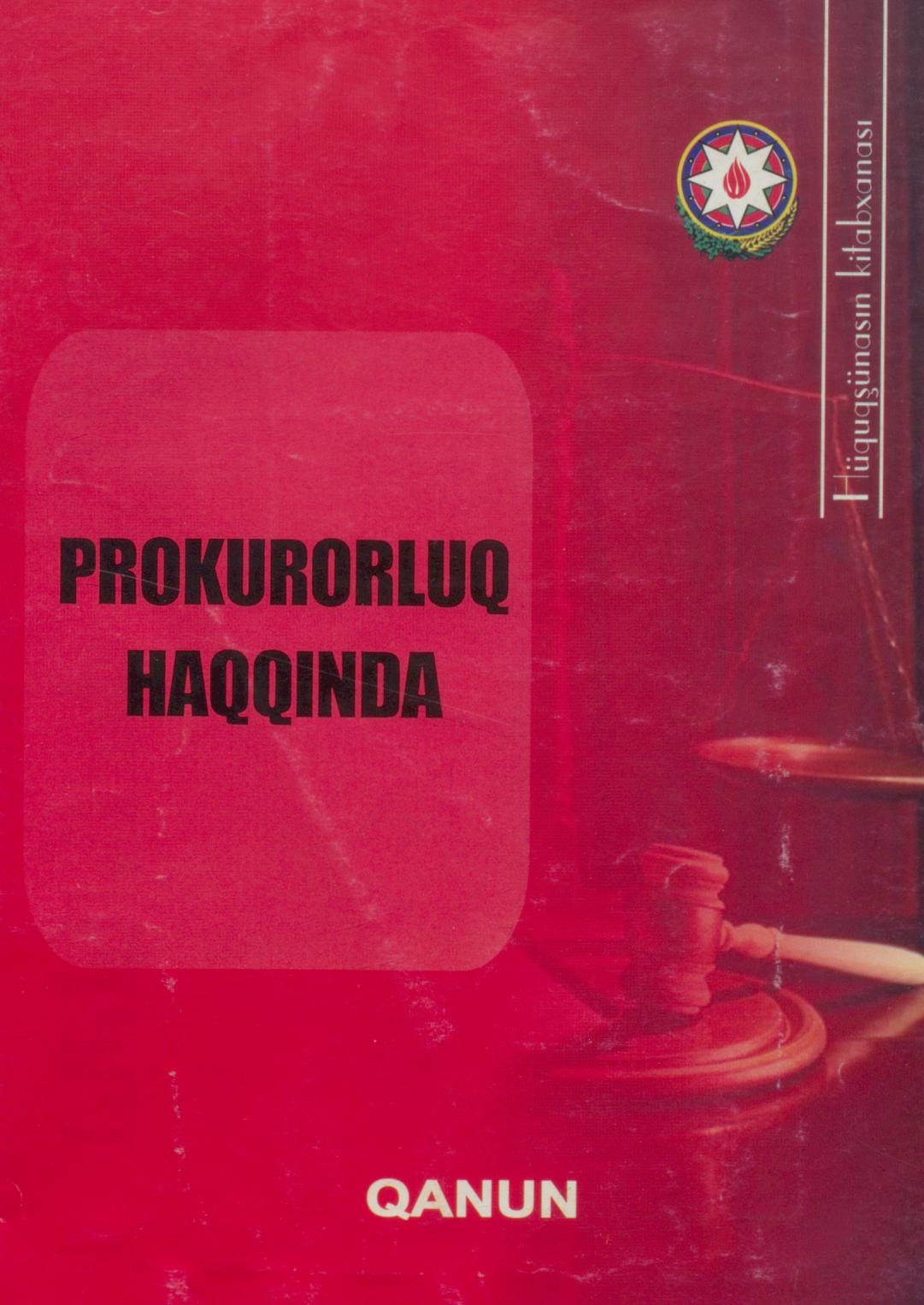 Kitabçada Prokurorluq haqqında Azərbaycan Respublikasının 7 dekabr 1999-cu il Qanunu verilmişdir.