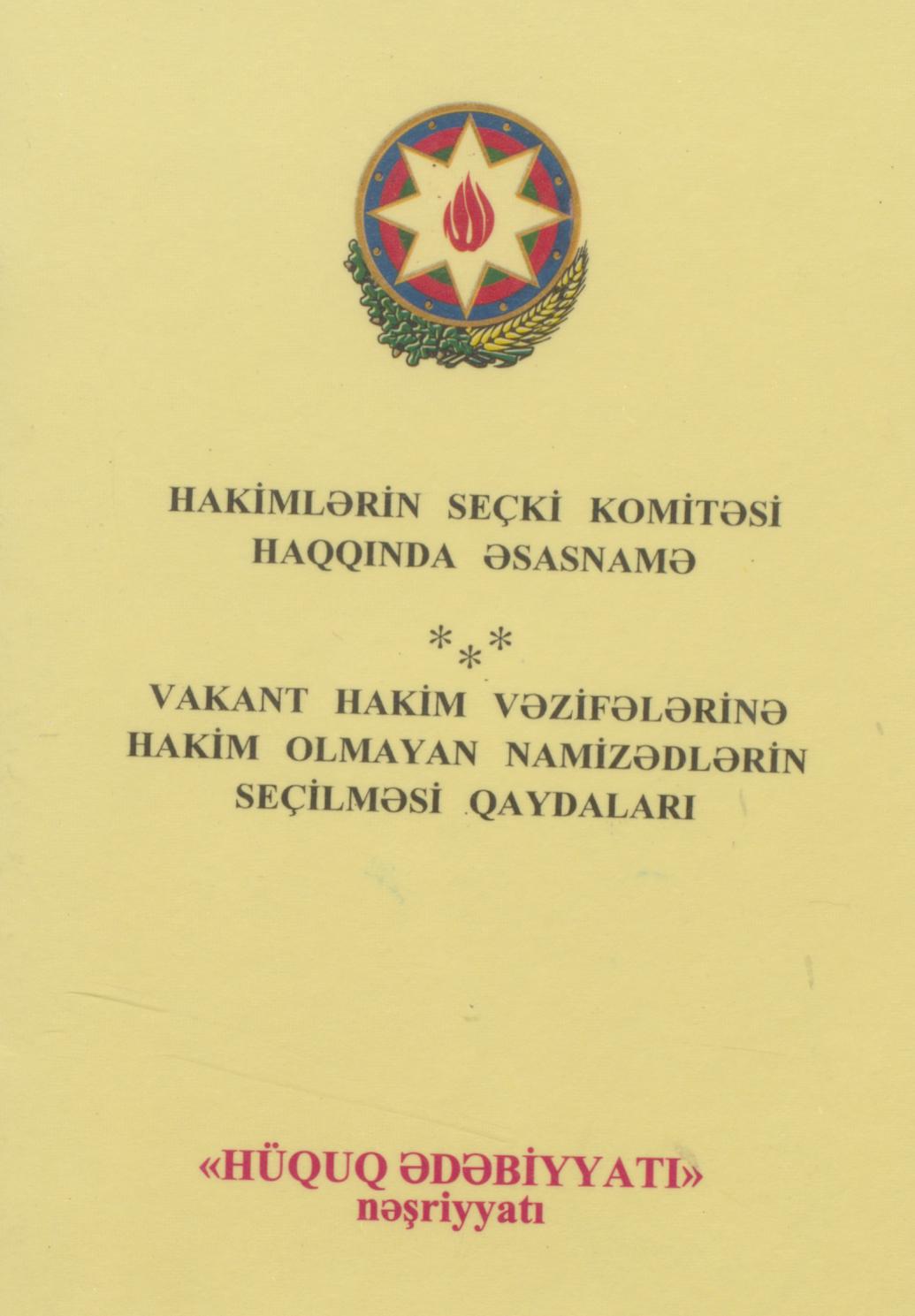 Kitabçada vakant hakim vəzifələrinə hakim olmayan namizədlərin seçilməsi qaydaları haqqında Əsasnam…