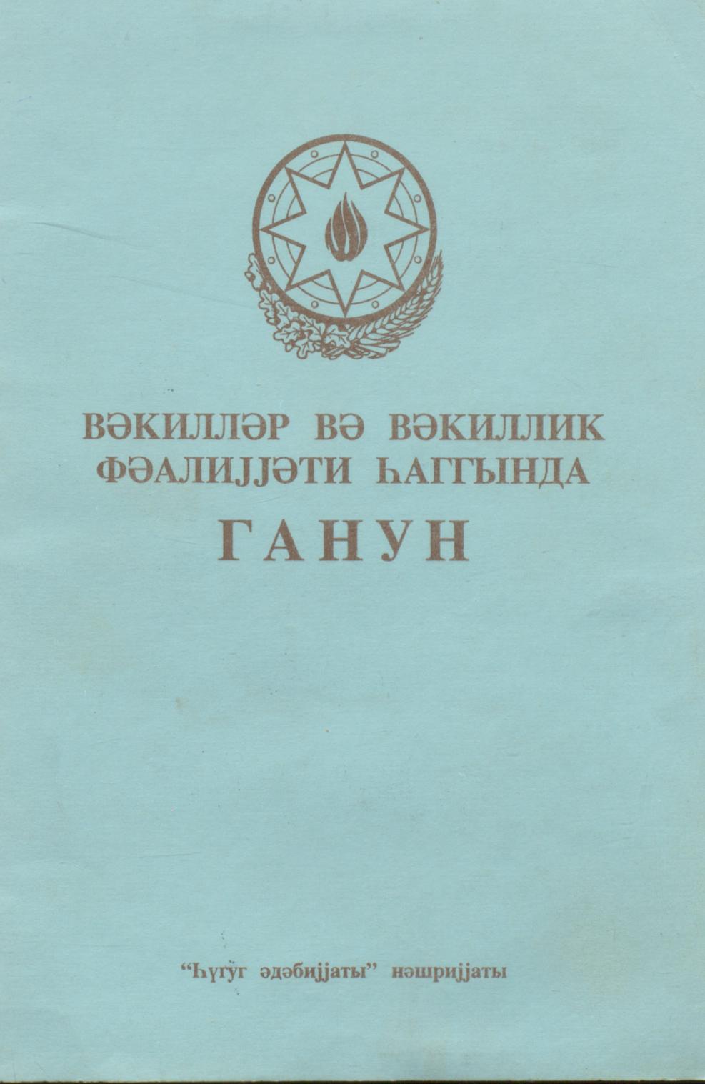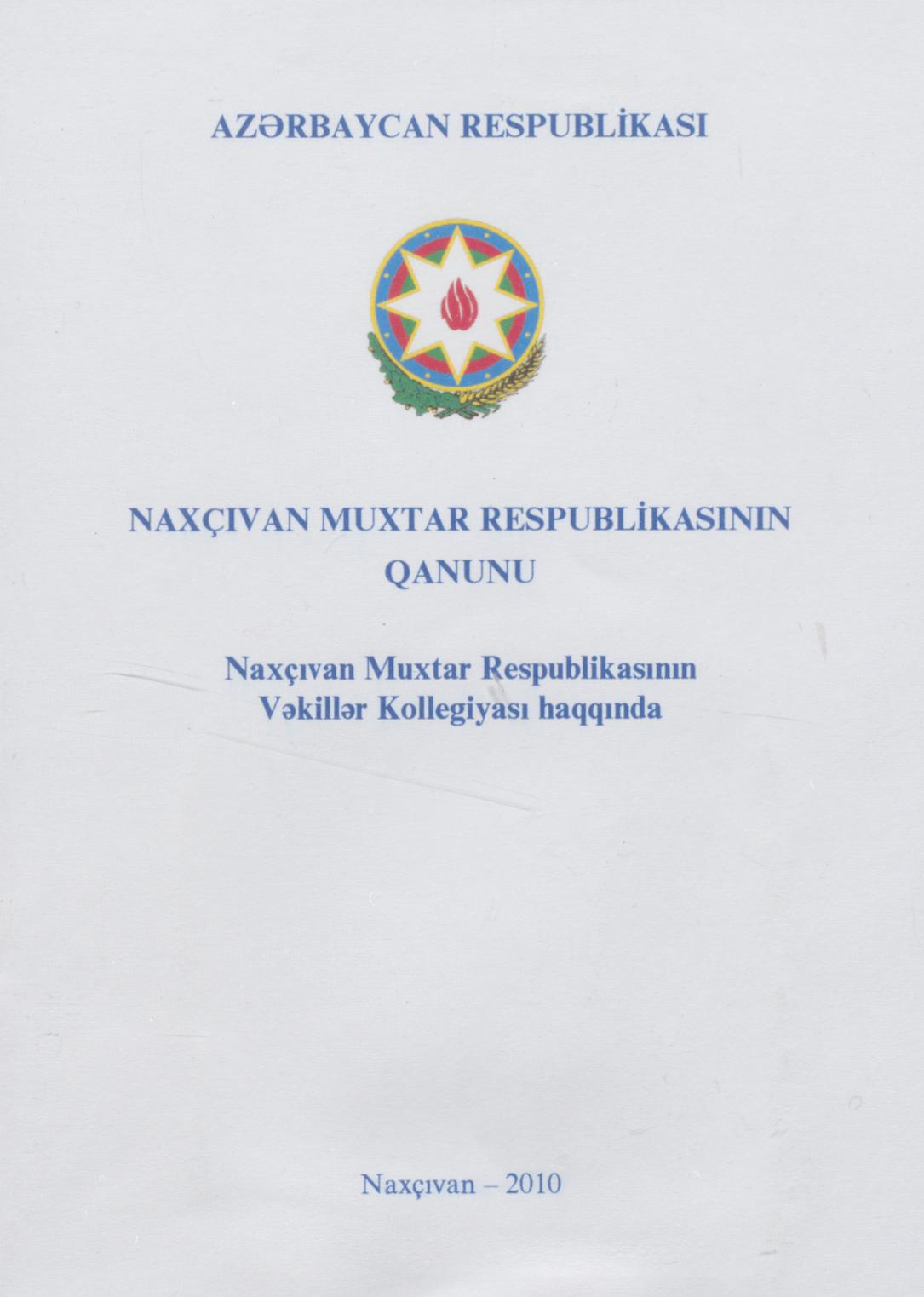 Kitaba Naxçıvan Muxtar Respublikasının Vəkillər Kollegiyası haqqında Qanunun maddələri daxil edilm…