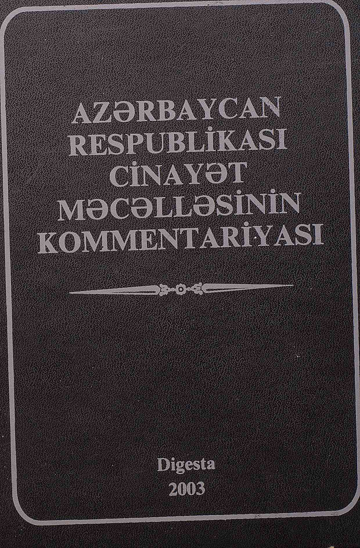 Kitabda Azərbaycan Respublikası Cinayət Məcəlləsinin kommentariyası verilmişdir.