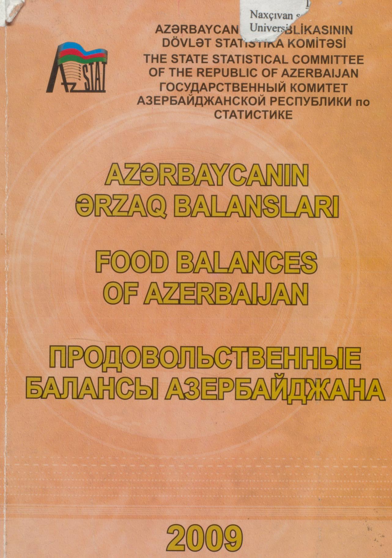 Kitabda Azərbaycanın ərzaq balanslarının statistik məlumatları toplanmışdır.