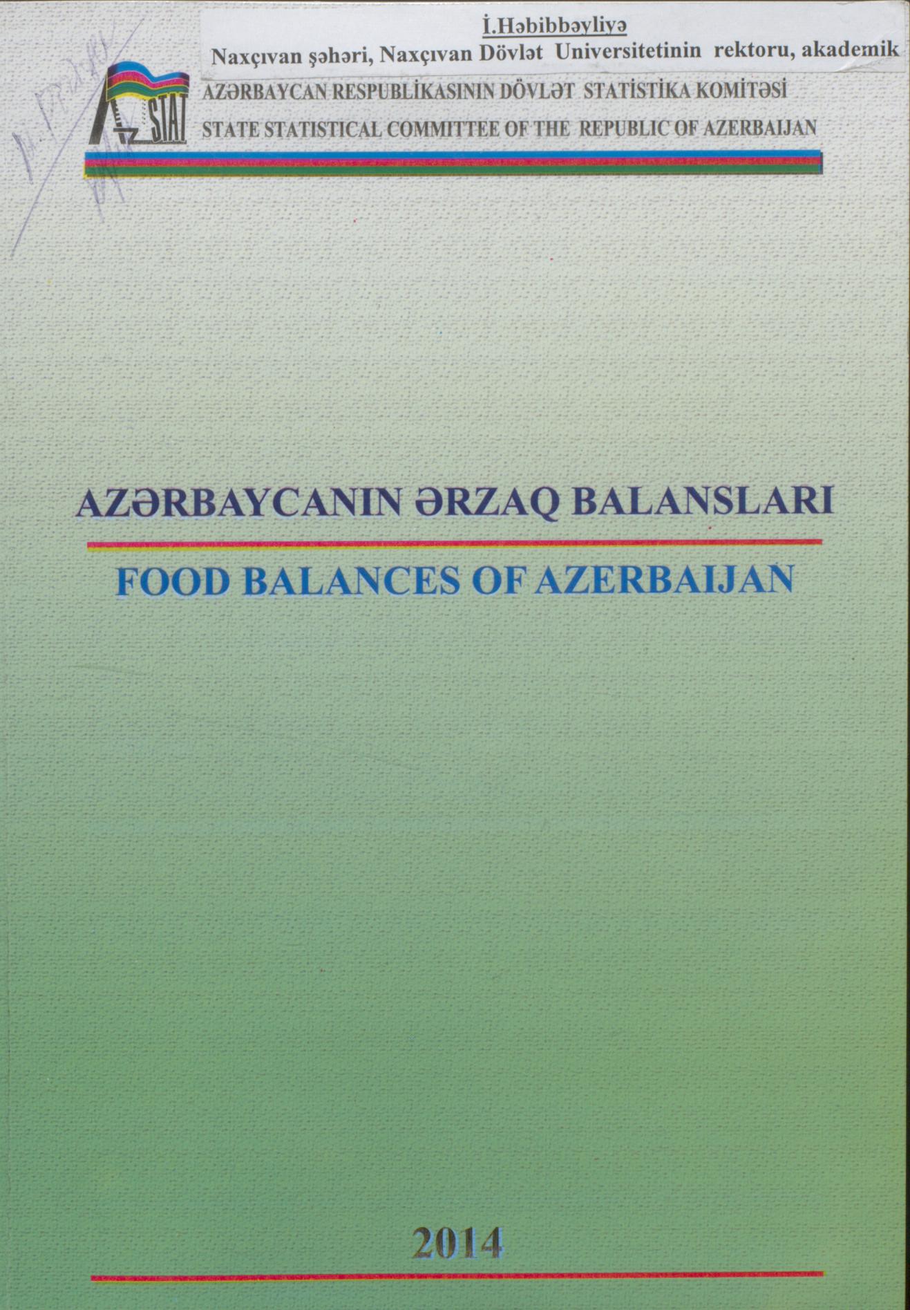 Kitabda 2014-cü il üçün Azərbaycanın ərzaq balansları haqqında statistik məlumatlar verilmişdir.
