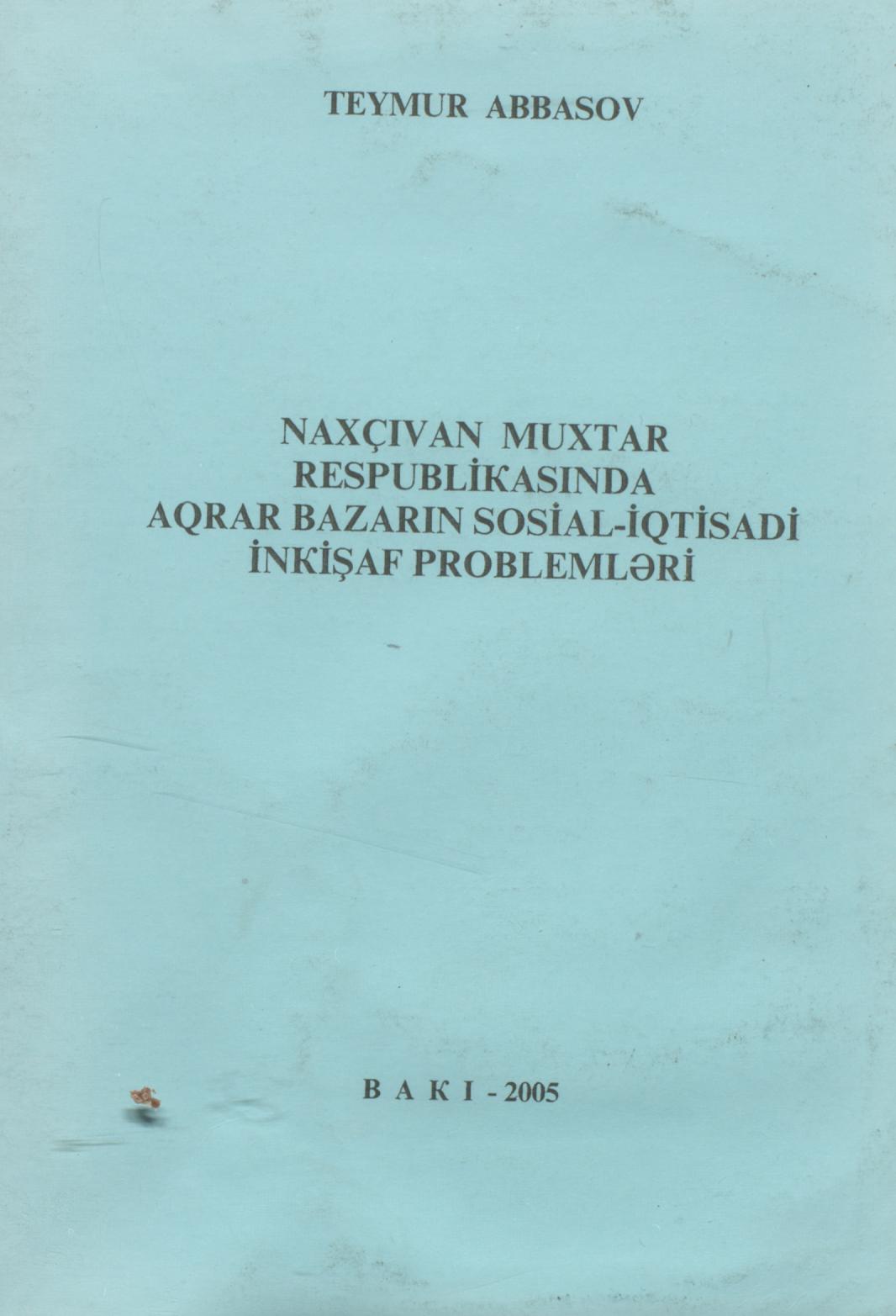 Kitab Naxçıvan Muxtar Respublikasında aqrar bazarın sosial-iqtisadi inkişaf problemlərindən bəhs ed…