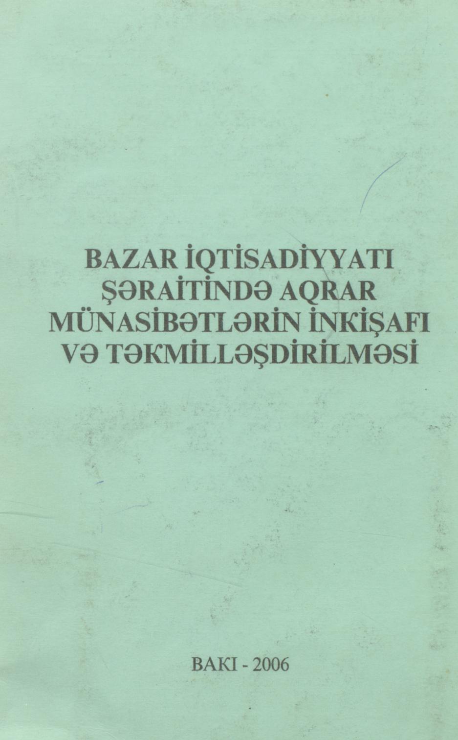 Kitabda bazar iqtisadiyyatı şəraitində aqrar münasibətlərin inkişafı və təkmilləşdirilməsi məsələlə…