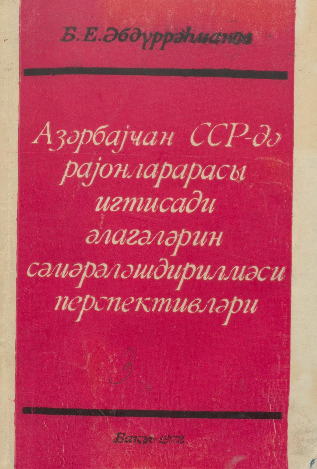 Kitab Azərbaycan SSR-də rayonlararası iqtisadi əlaqələrin səmərələşdirilməsi perspektivlərindən bə…