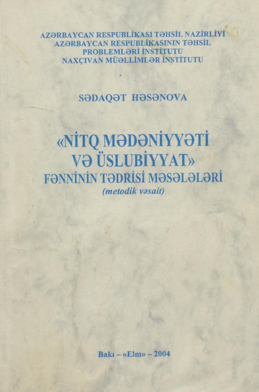 Metodik vəsait "Nitq mədəniyyəti və üslubiyyat" fənnninin tədrisi məsələlərindən bəhs edir.