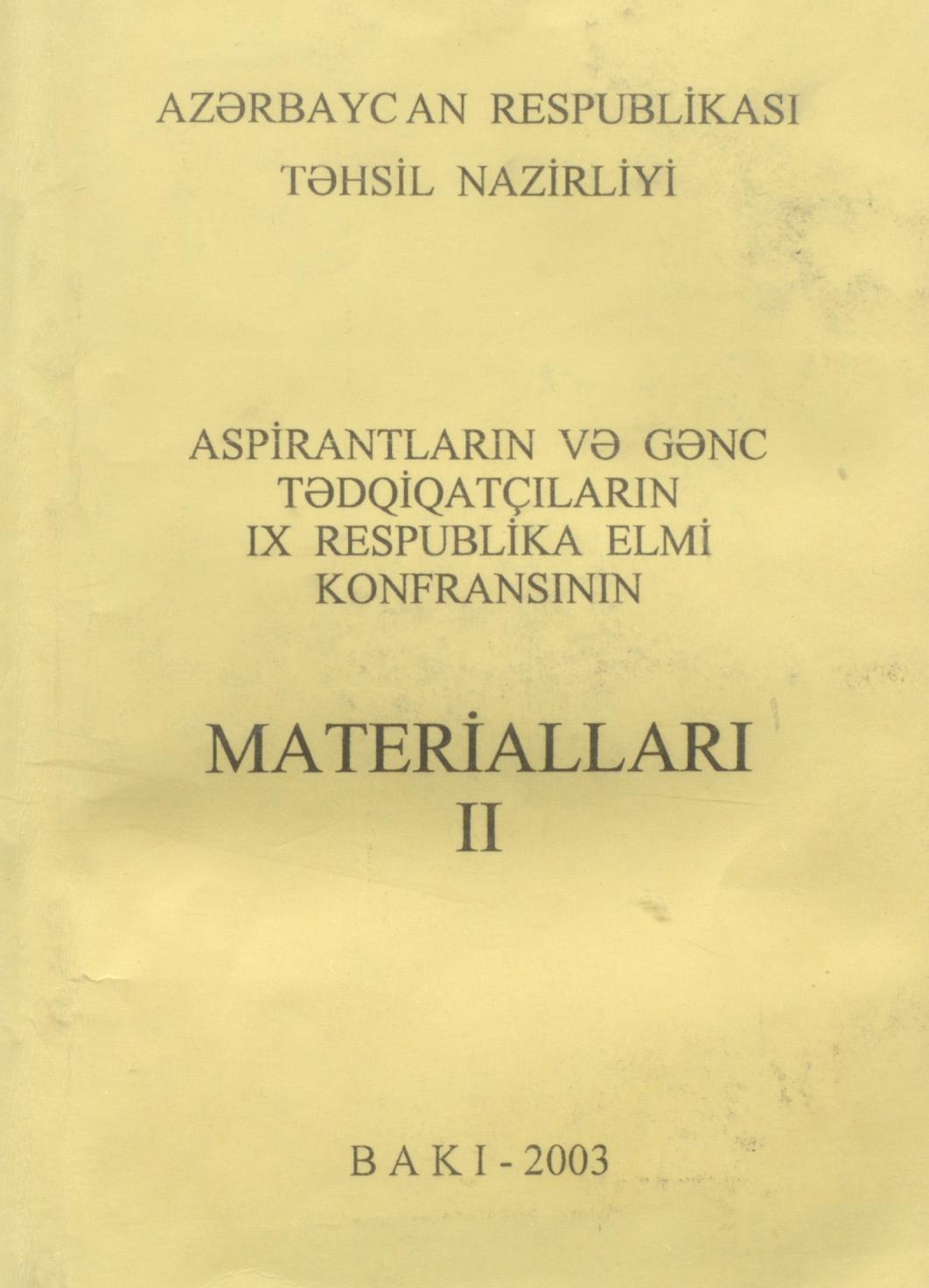 Kitaba aspirantların və gənc tədqiqatçıların IX respublika elmi konfransının materialları daxil …
