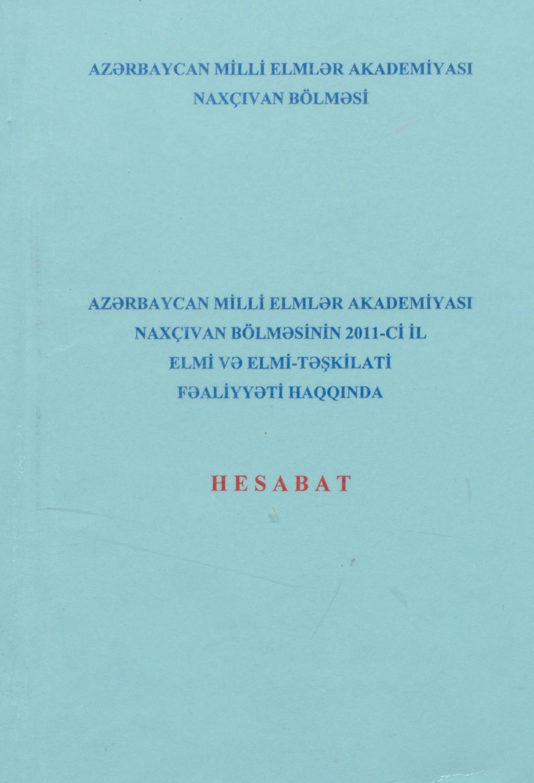 Kitaba Azərbaycan Milli Elmlər Akademiyası Naxçıvan Bölməsinin 2011-ci il elmi və elmi-təşkilati fə…