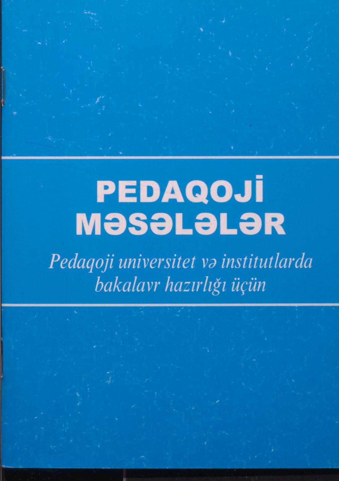 Metodik vəsaitdə - müxtəlif pedaqoji məsələlərə aid nümunələr verilmişdir.