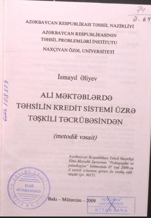 Metodik vəsaitdə ali məktəblərdə kredit sistemi tətbiqinin dövrün tələblərindən irəli gəldiyi əsasl…