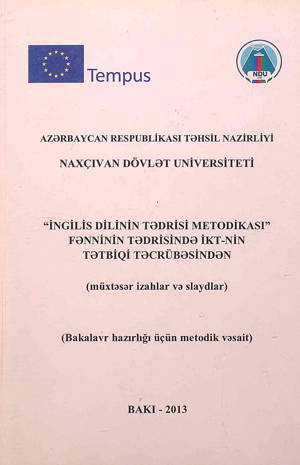 Metodik vəsaitdə İngilis dilinin tədrisi metodikası fənninin tədrisində İKT-nin tətbiqi təcrübəsind…