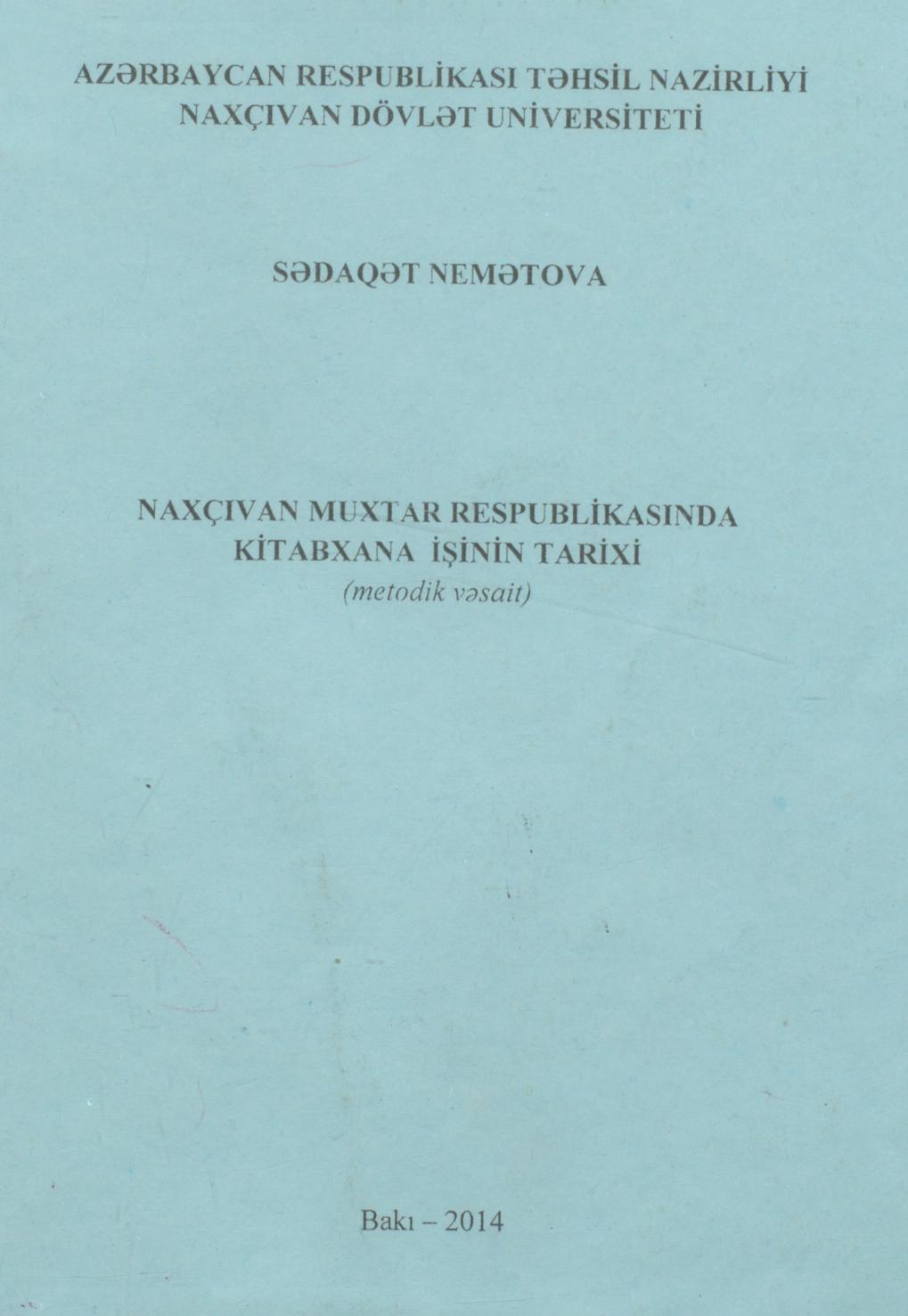 Metodik vəsaitdə Naxçıvan Muxtar Respublikasında kitabxana işinin tarixindən, bölgədə fəaliyyət gös…