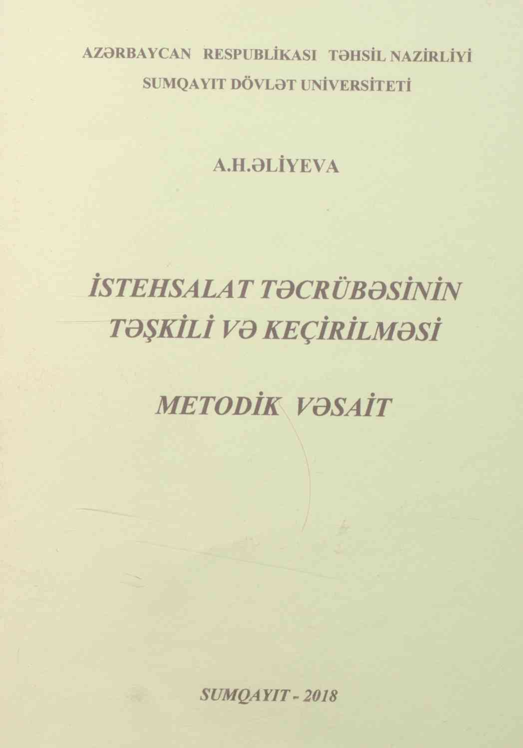Metodik vəsaitdə istehsalat təcrübəsinin təşkili və keçirilməsi haqqında məlumat verilmişdir.