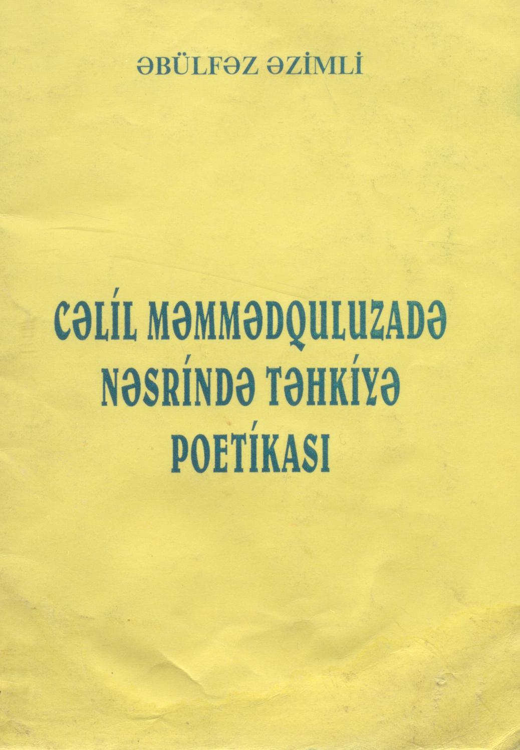 Metodik vəsaitdə Cəlil Məmmədquluzadə nəsrində təhkiyə poetikasından bəhs edilmişdir.