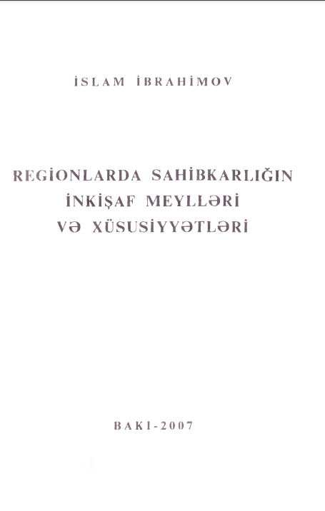 Regionlarda sahibkarlığın inkişaf meylləri və xüsusiyyətləri
