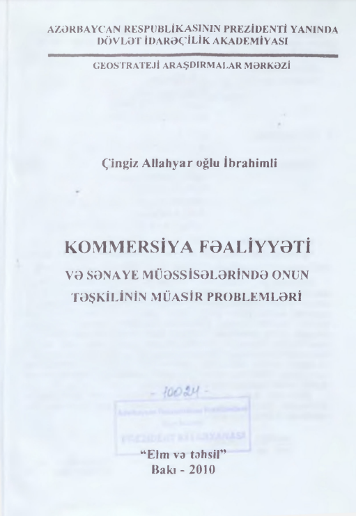 Kommersiya fəaliyyəti və sənaye müəssisələrində onun təşkilinin müasir problemləri
