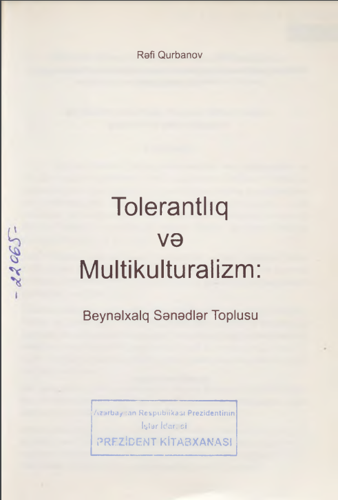 Tolerantlıq və multikulturalizm : beynəlxalq sənədlər toplusu