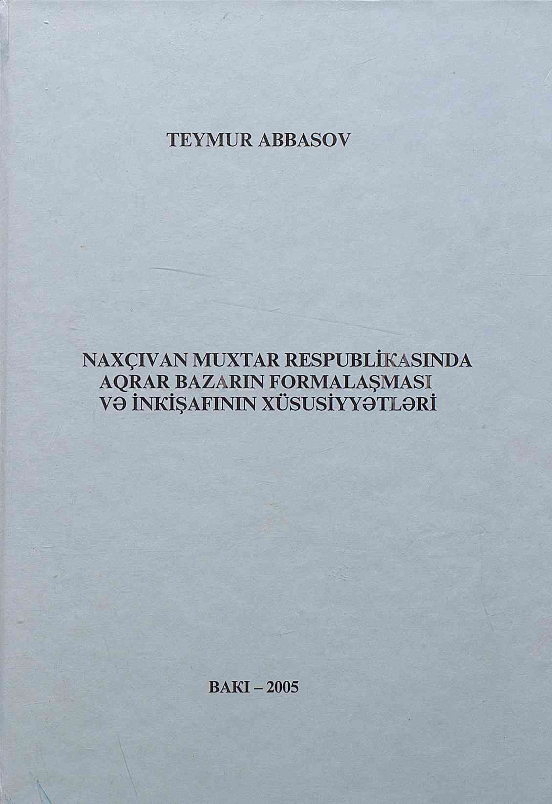 Naxçıvan Muxtar Respublikasında aqrar bazarın formalaşması və inkişafının xüsusiyyətləri